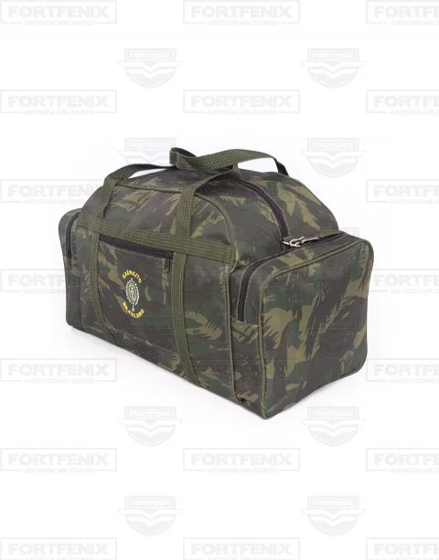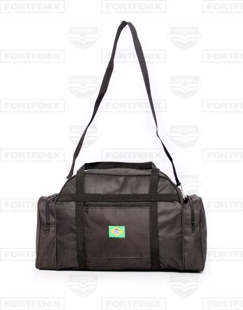 Confeccionada em nylon 600 pvc, material impermeável. Possui, compartimento principal. Dois bolsos laterais. Um bolso batido na frente. Alça de ombro removível. Alças de mão.