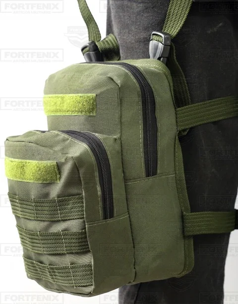 Confeccionado em **Rip Stop Poliéster**, traz excelente resistência para uso tático, airsoft e atividades outdoor. Possui sistema de fixação na perna/cintura e formato modular para acesso rápido ao conteúdo.
