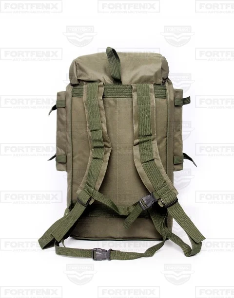 Mochila Litro de camping é fabricada com tecido Poliéster 600 impermeável. Contém 3 bolsos externos com fechamento em zíper, e reforço com fitas de compressão e cinto de apoio na cintura.
