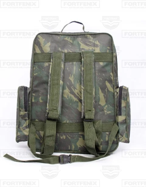 Produzida em material resistente e impermeável, protege os itens contra chuva e desgaste constante. Possui compartimento principal amplo, dois bolsos laterais, um compartimento adicional e um bolso frontal, facilitando a organização e o acesso rápido aos objetos.